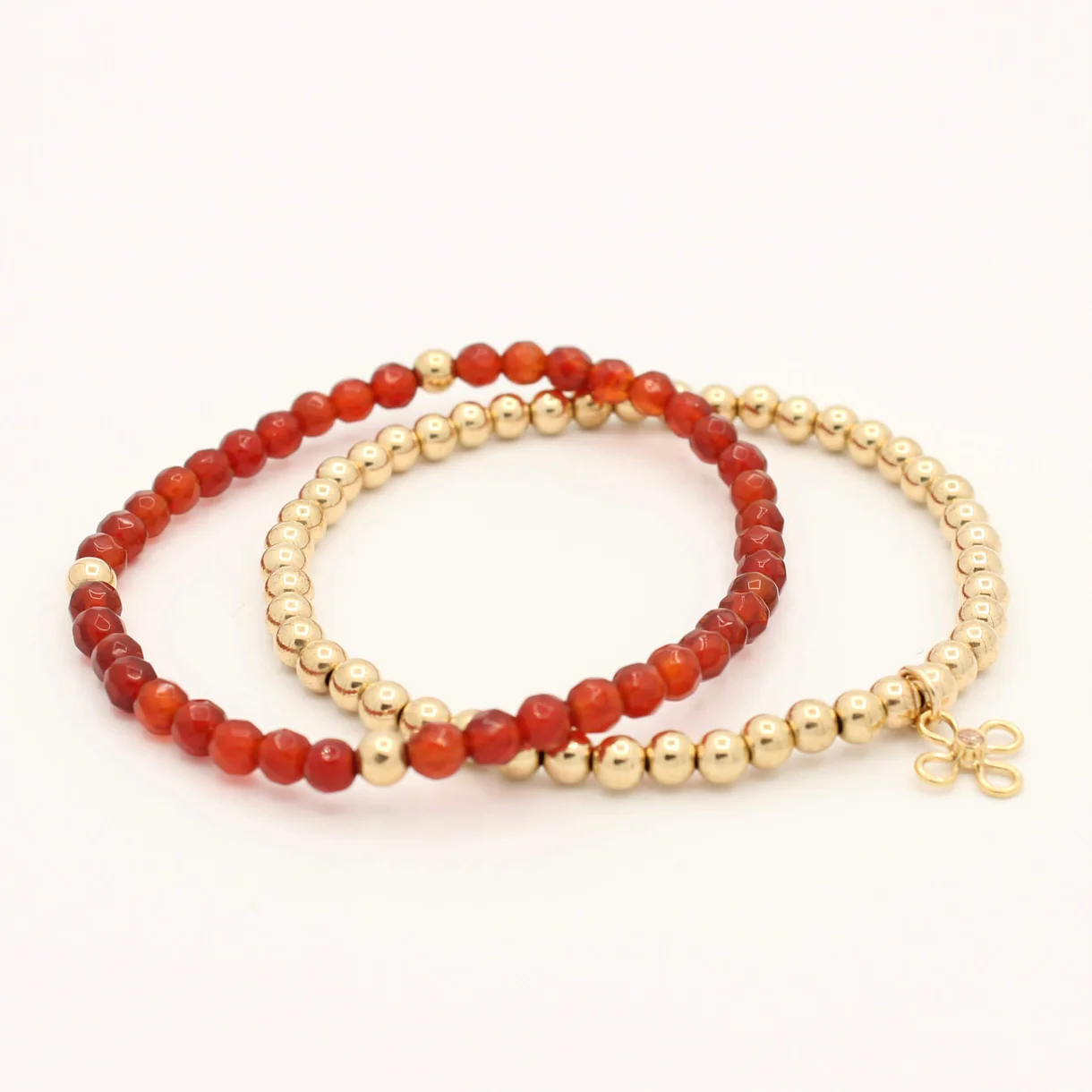 Set: 2 armbanden (1x volledig gold filled, 1x gold filled met carneool)