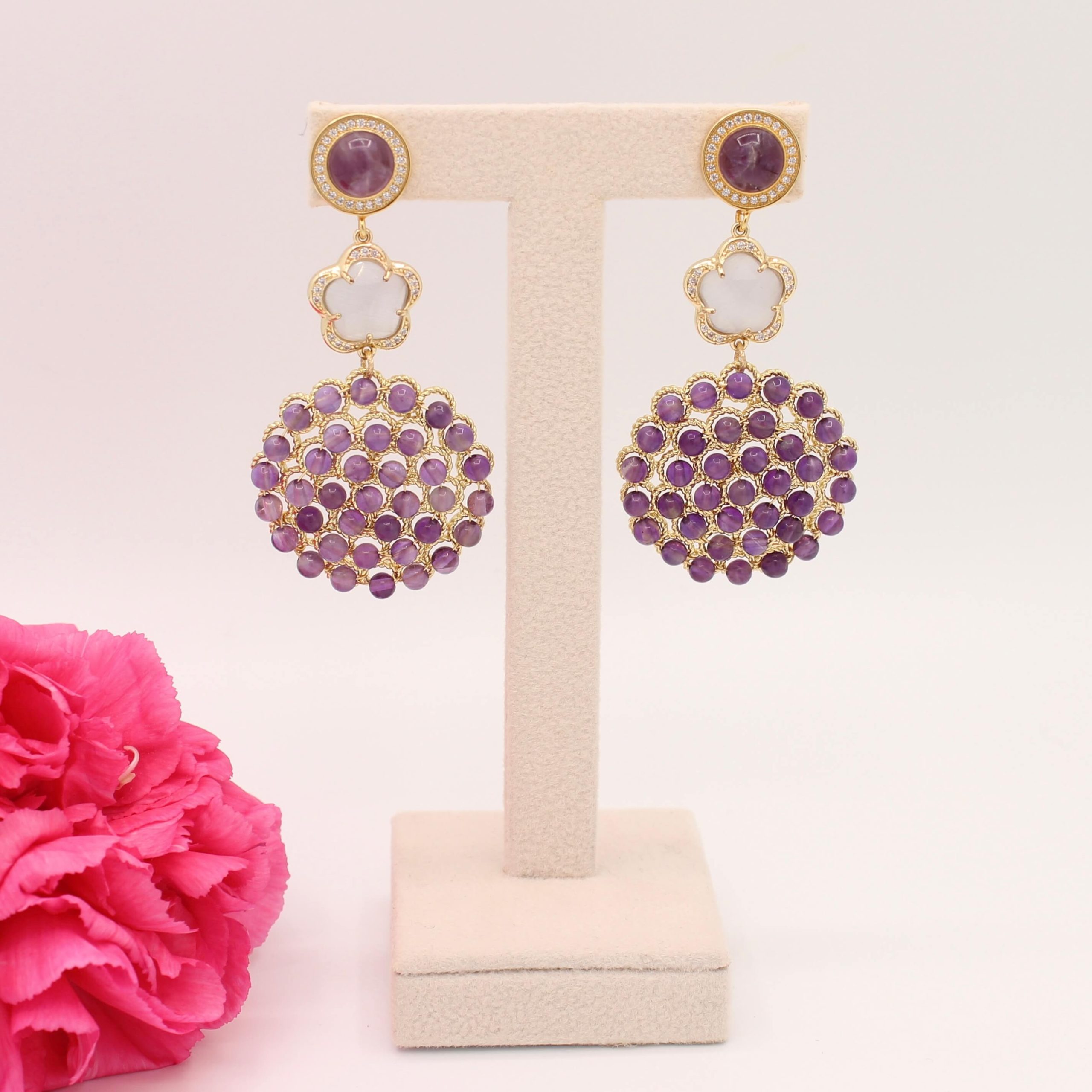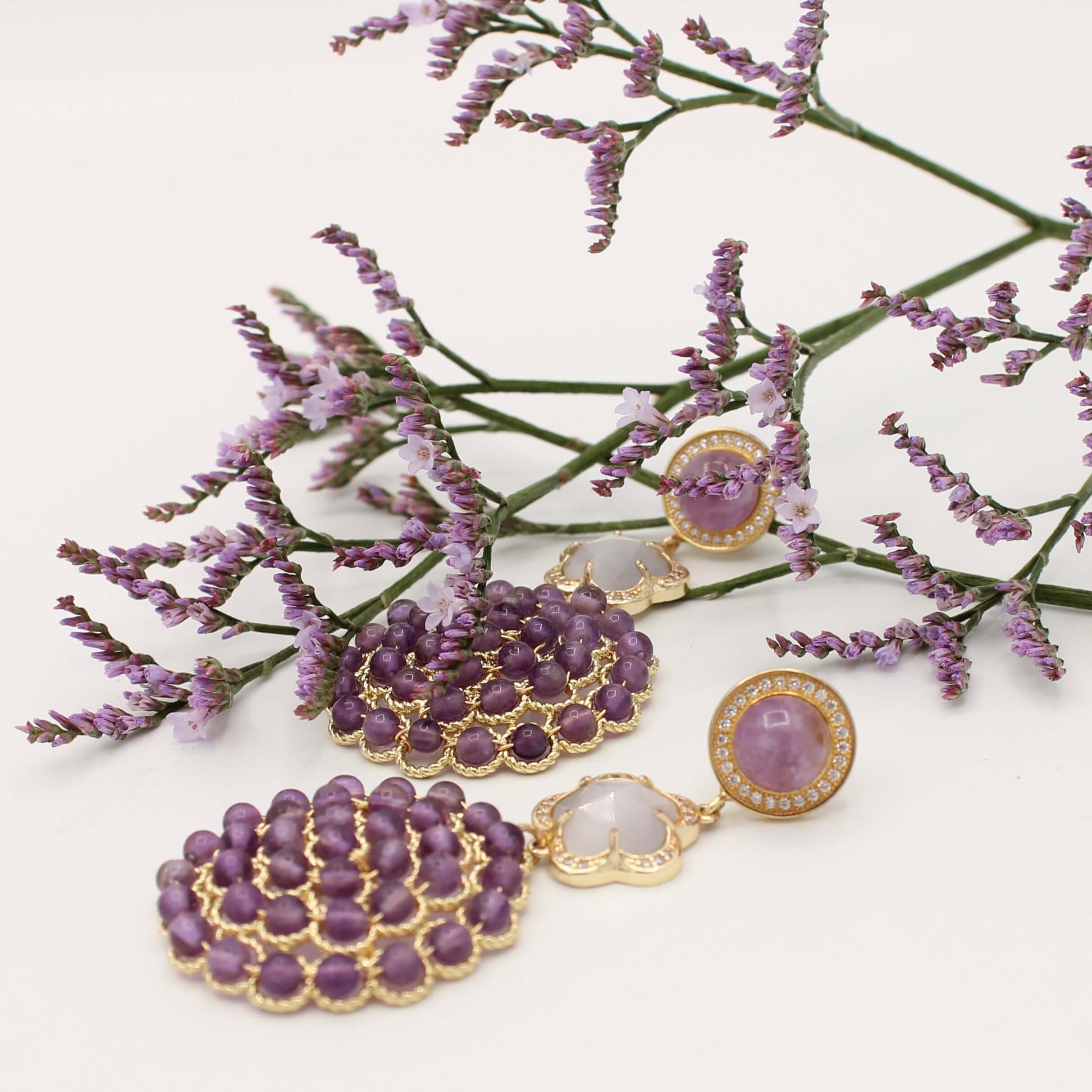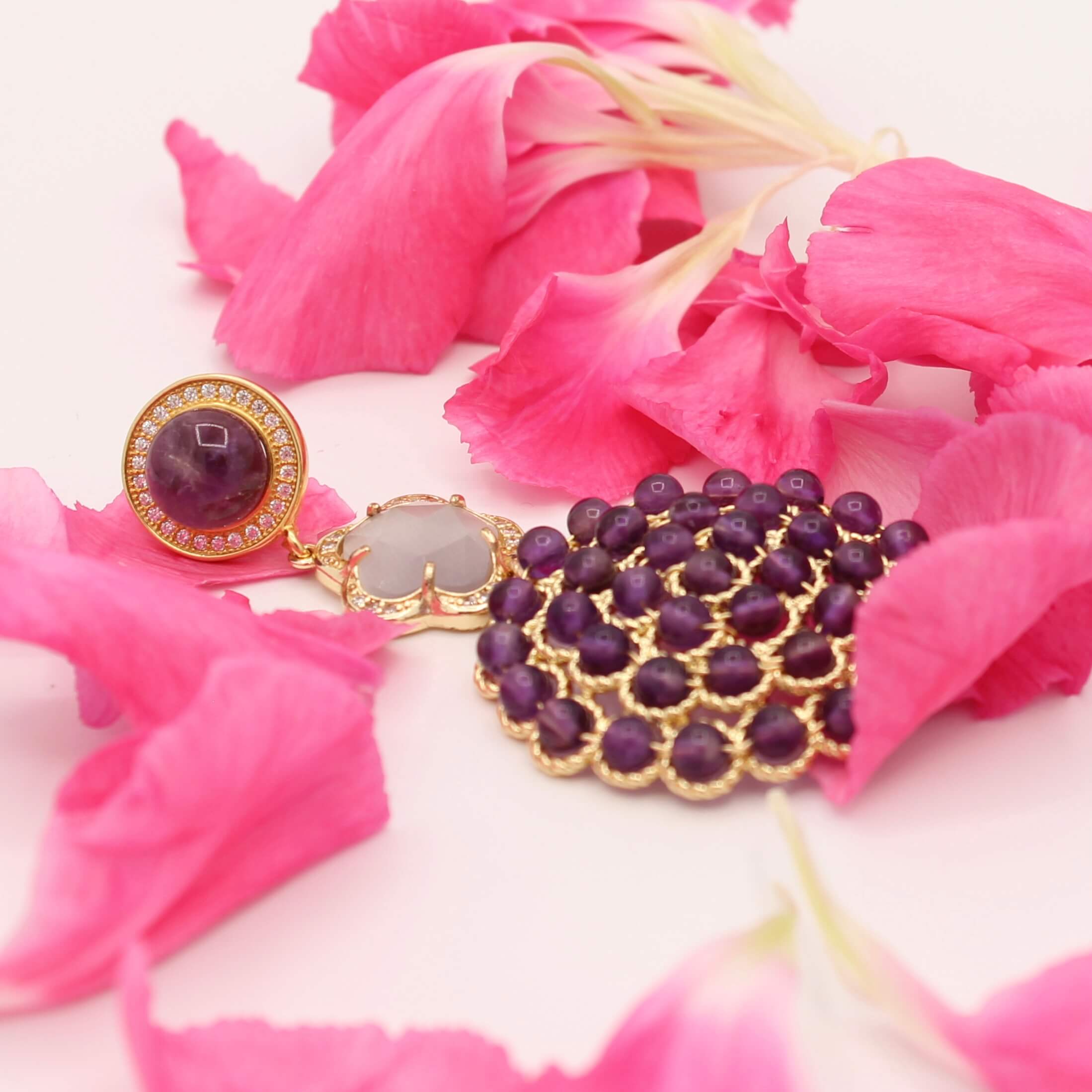 Met hun elegante paarse tint en luxueuze afwerking zijn deze oorstekers geschikt voor zowel dagelijkse elegantie als feestelijke gelegenheden. Ze zijn ideaal om te combineren met neutrale tinten of andere paarse accenten voor een stijlvolle, gecoördineerde look.