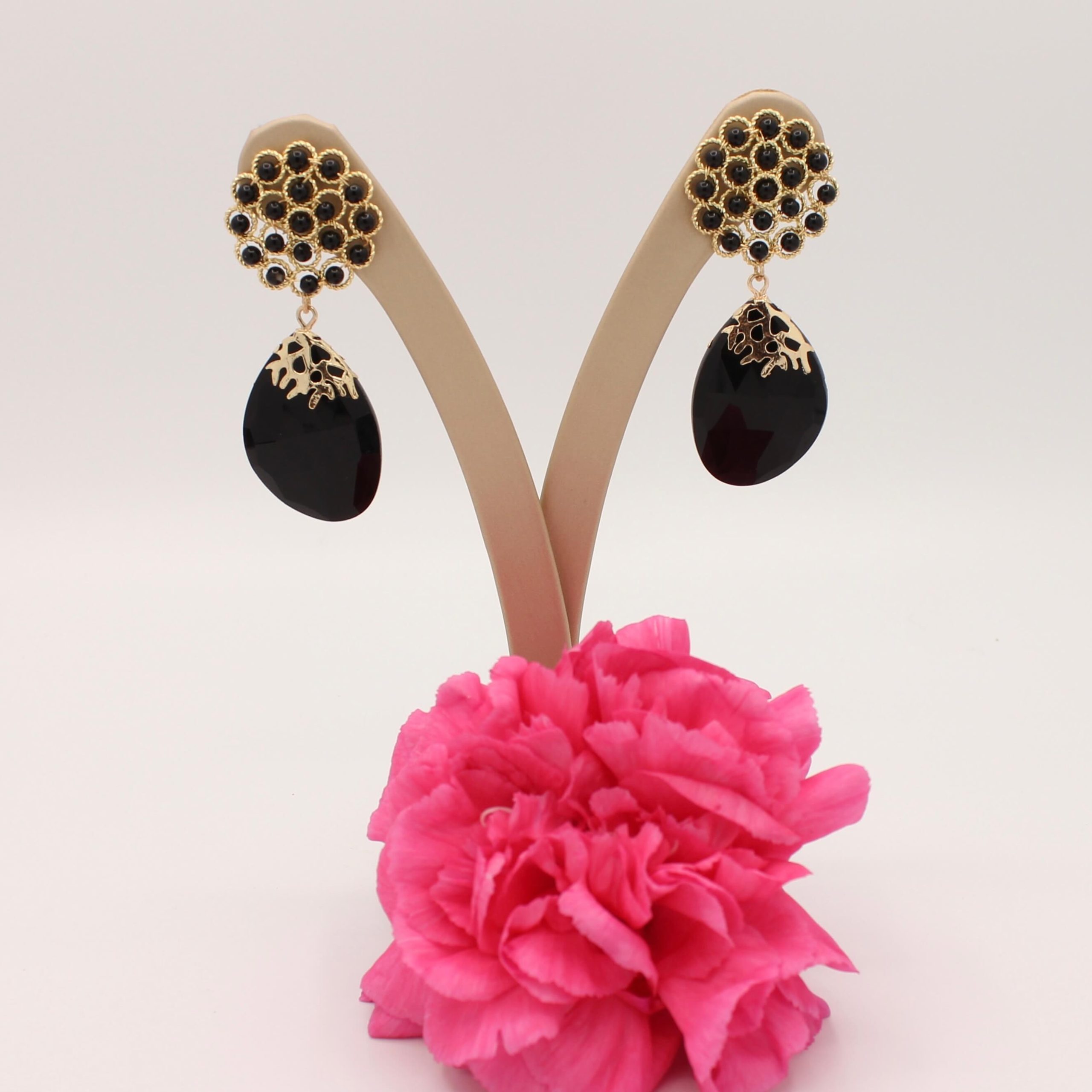 Beaded Flower & Onyx oorstekers