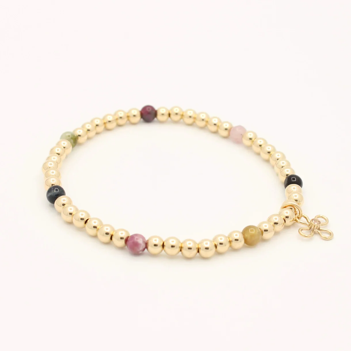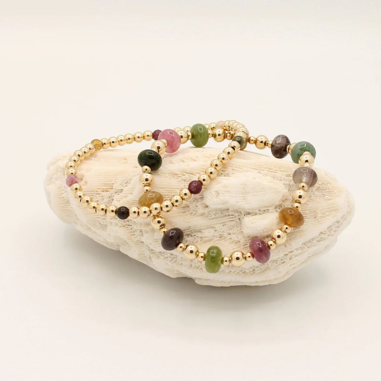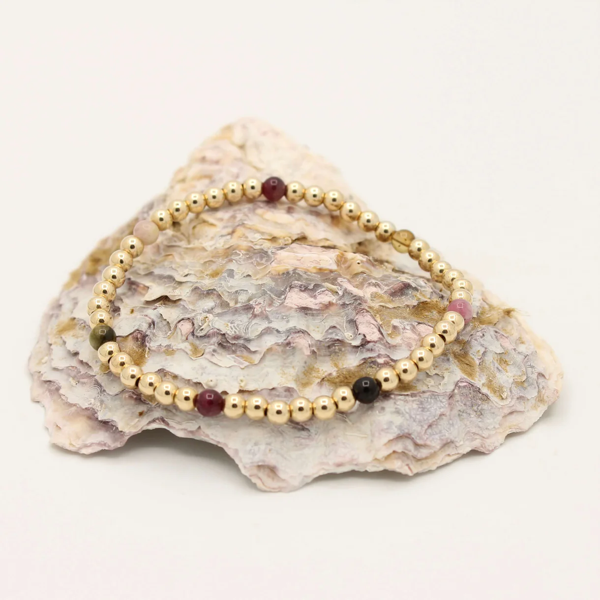 De Elegant Toermalijn armband is een verfijnd ontwerp met 4 mm toermalijnkralen en 14K Gold Filled accenten. Een stijlvol en tijdloos sieraad dat moeiteloos combineert.