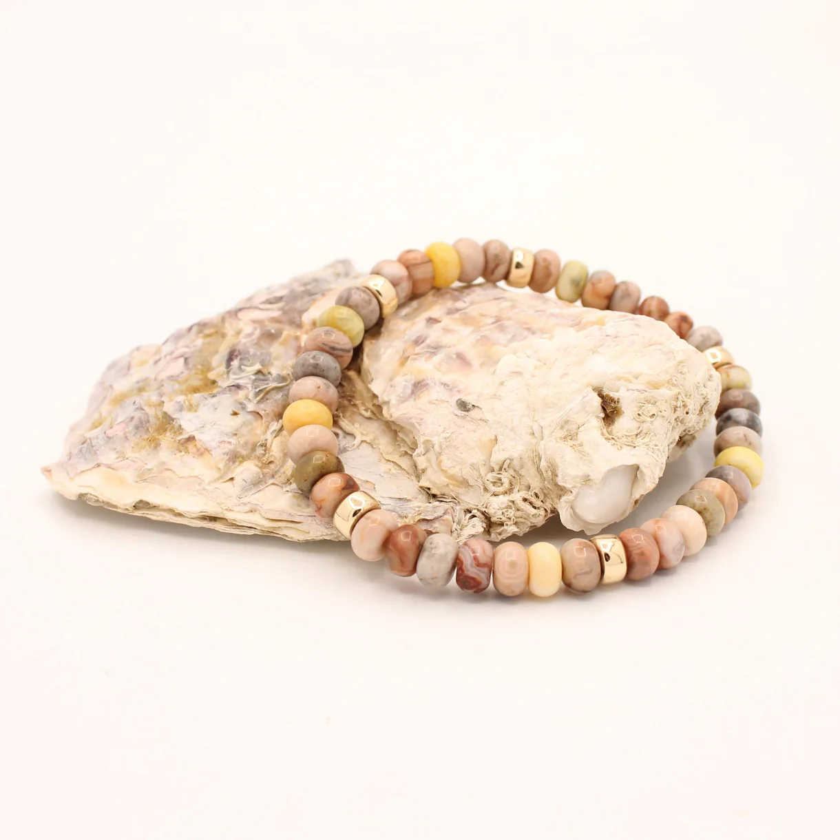 De Joy armband met Picasso Jaspis kan perfect solo worden gedragen als subtiel statement, maar is ook prachtig te combineren met andere armbanden uit de collectie. De mix van natuurlijke kleuren maakt hem veelzijdig: stijlvol bij een casual outfit en elegant bij een feestelijke gelegenheid.