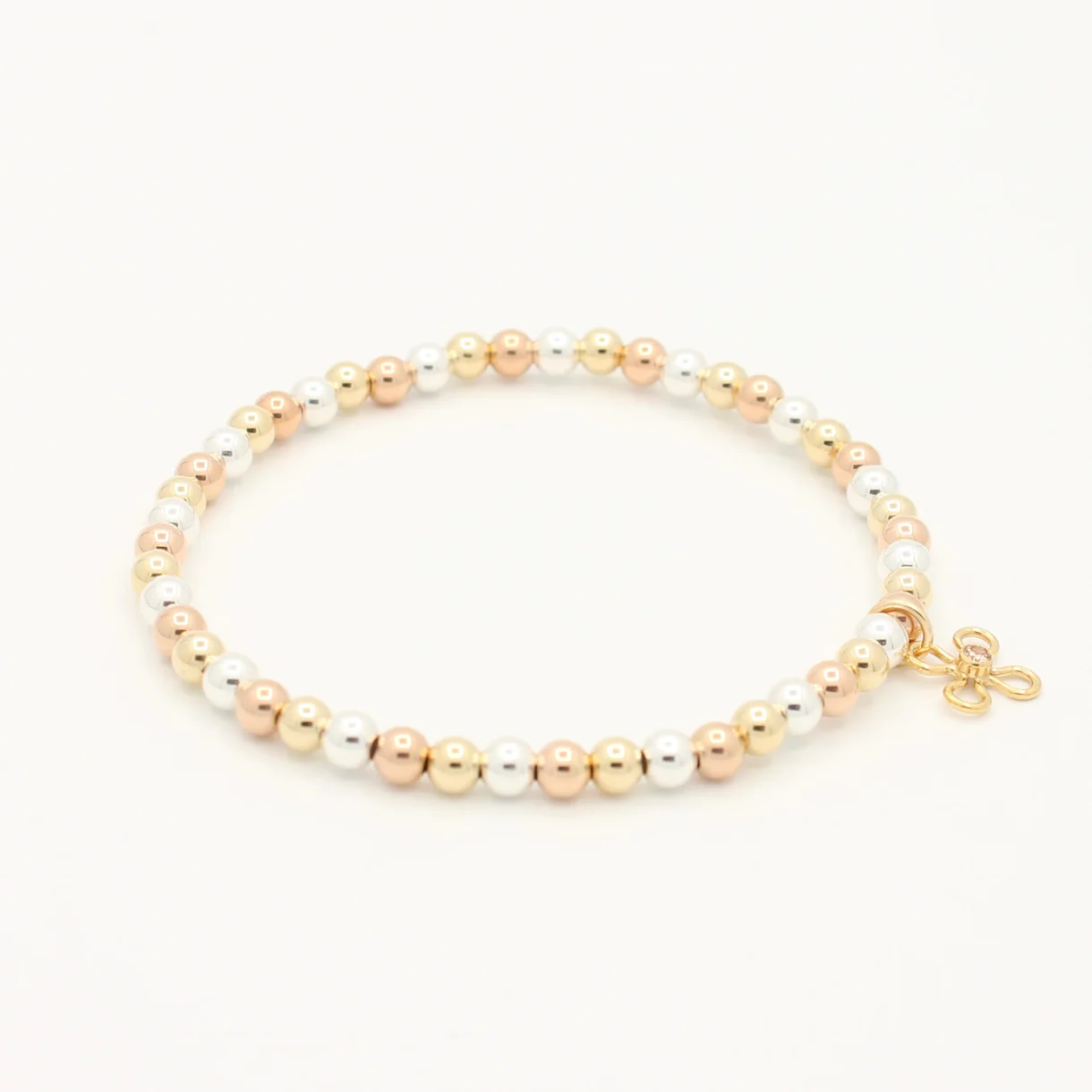 Het Original 3 Color armband Gold | Silver | 4mm is een tijdloos en veelzijdig sieraad, met Gold Filled rosé- en geelgouden kralen gecombineerd met Sterling zilver. Elegant, chic en perfect bij elke outfit.