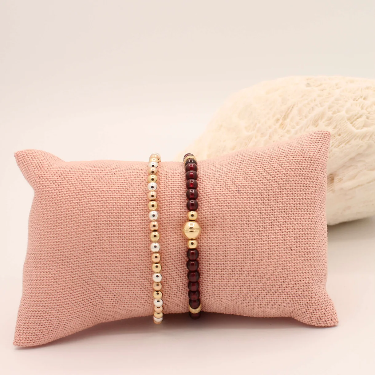 De armband is gemaakt van duurzame Gold Filled kralen of 925 sterling zilver, wat zorgt voor een luxe uitstraling en langdurige kwaliteit. Gold Filled sieraden bevatten een dikke laag echt goud die stevig is verbonden met het basismateriaal. Hierdoor blijft de kleur langer mooi en is de armband beter bestand tegen slijtage dan vergulde sieraden.