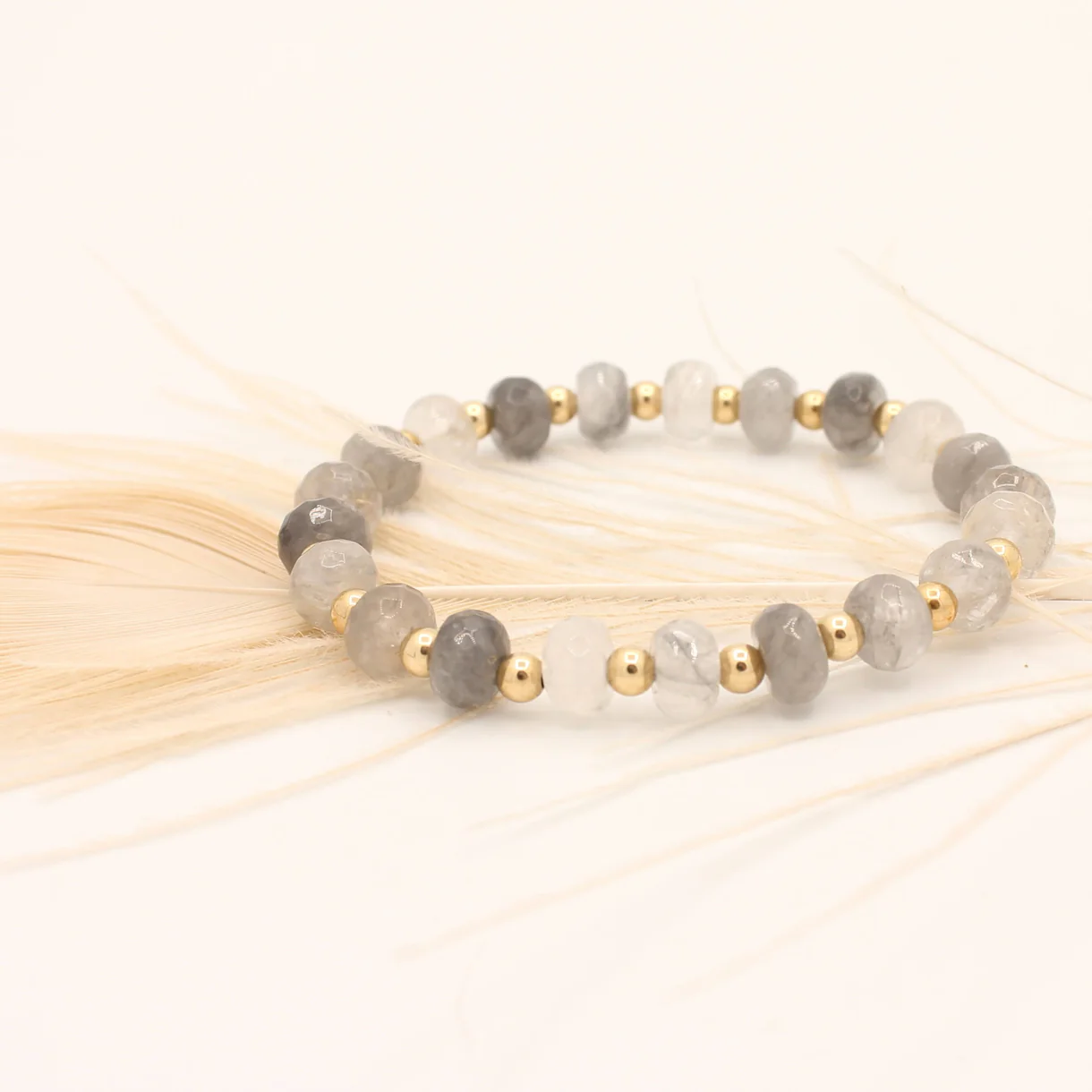 De armband is afgewerkt met 4 mm Original Gold Filled 14K kralen. Deze behouden hun warme glans, zijn slijtvast en hypoallergeen. De combinatie van neutrale agaat en goudkleurige accenten maakt dit sieraad geschikt voor dagelijks gebruik én voor meer geklede gelegenheden.