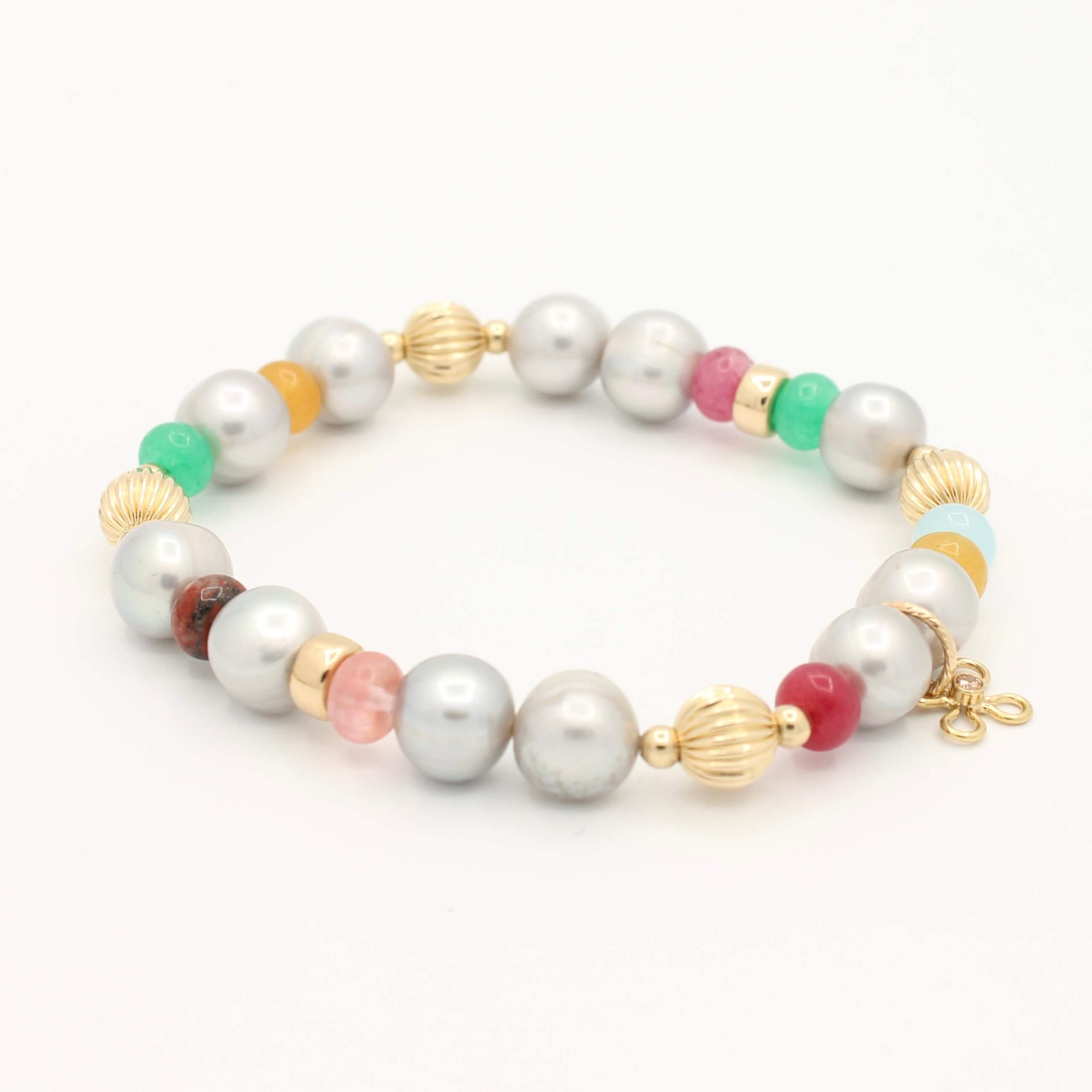 De Original Gold Filled | Stripe | 3 & 8 mm armband, gecombineerd met zoetwater parels is een elegante armband waarin klassieke parels met 3 mm kralen gold filled worden gecombineerd met vier opvallende gestreepte gold filled kralen van 8 mm. Het subtiele reliëf van de gestreepte kralen geeft dit sieraad een extra dimensie en maakt het net even anders dan een gewone basic. De vrolijk gekleurde edelsteen rondellen geven de armband een casual tot chic look. Kleurrijke elegantie.