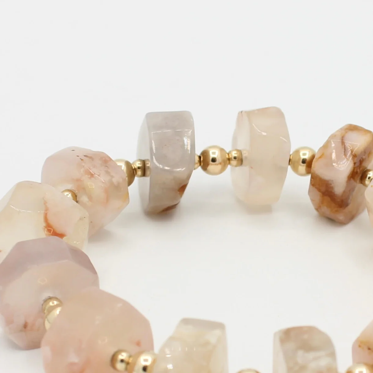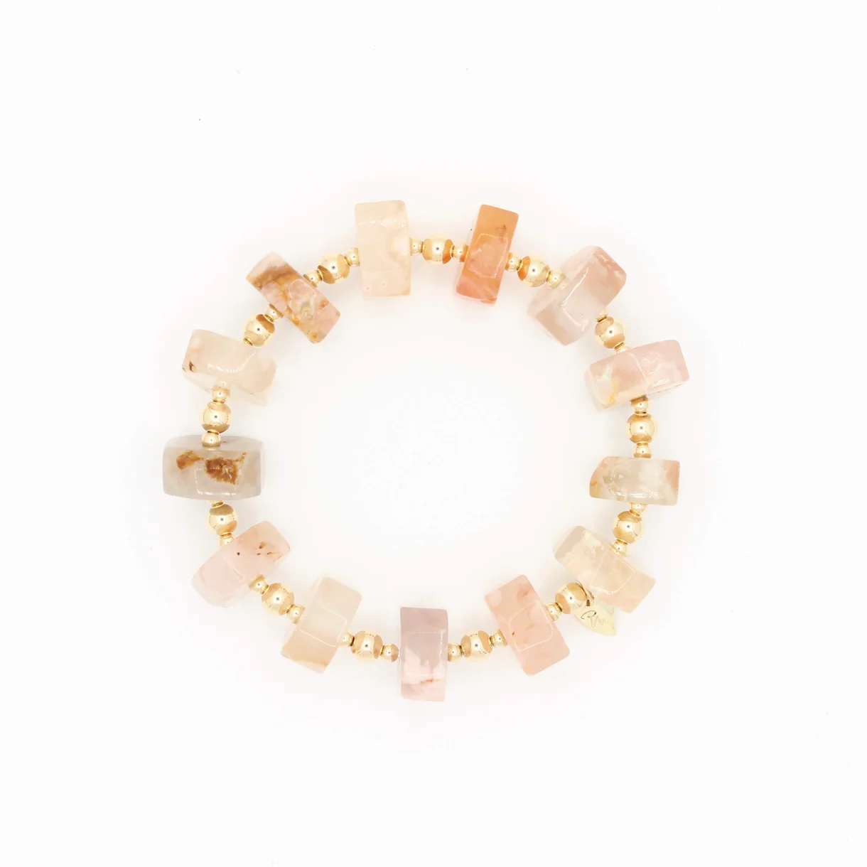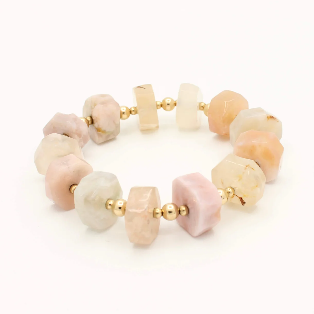 De YOU ROCK !!! Pink armband combineert grote kralen van roze oceaan agaat met Original Gold Filled 14K. Een luxueus en betoverend sieraad dat elegantie en kracht samenbrengt.