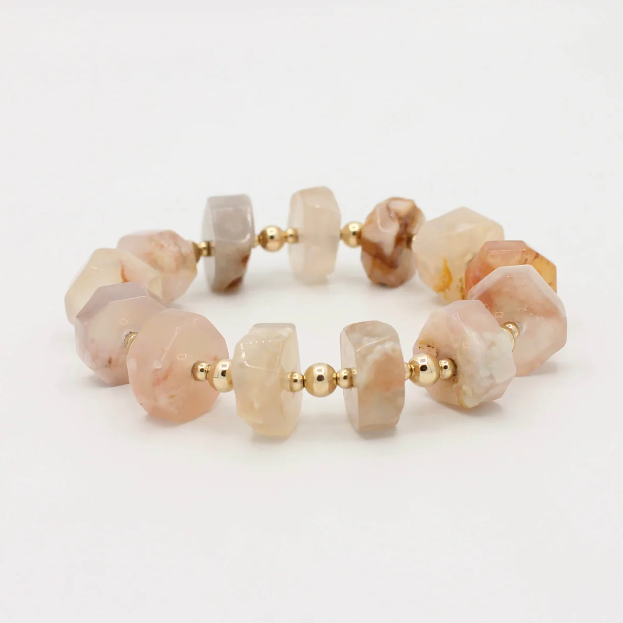 De edelstenen zijn gecombineerd met Original Gold Filled 14K kralen, die een warme gouden glans toevoegen. Gold filled is een hoogwaardige techniek waarbij een dikke laag 14K goud wordt verwerkt, waardoor de armband langdurig mooi blijft, niet snel slijt en bovendien hypoallergeen is. In tegenstelling tot goldplated is dit een duurzame keuze die jarenlang zijn waarde behoudt. De armband is dubbel geregen op een flexibele band, waardoor hij comfortabel draagt en stevig om de pols blijft zitten.