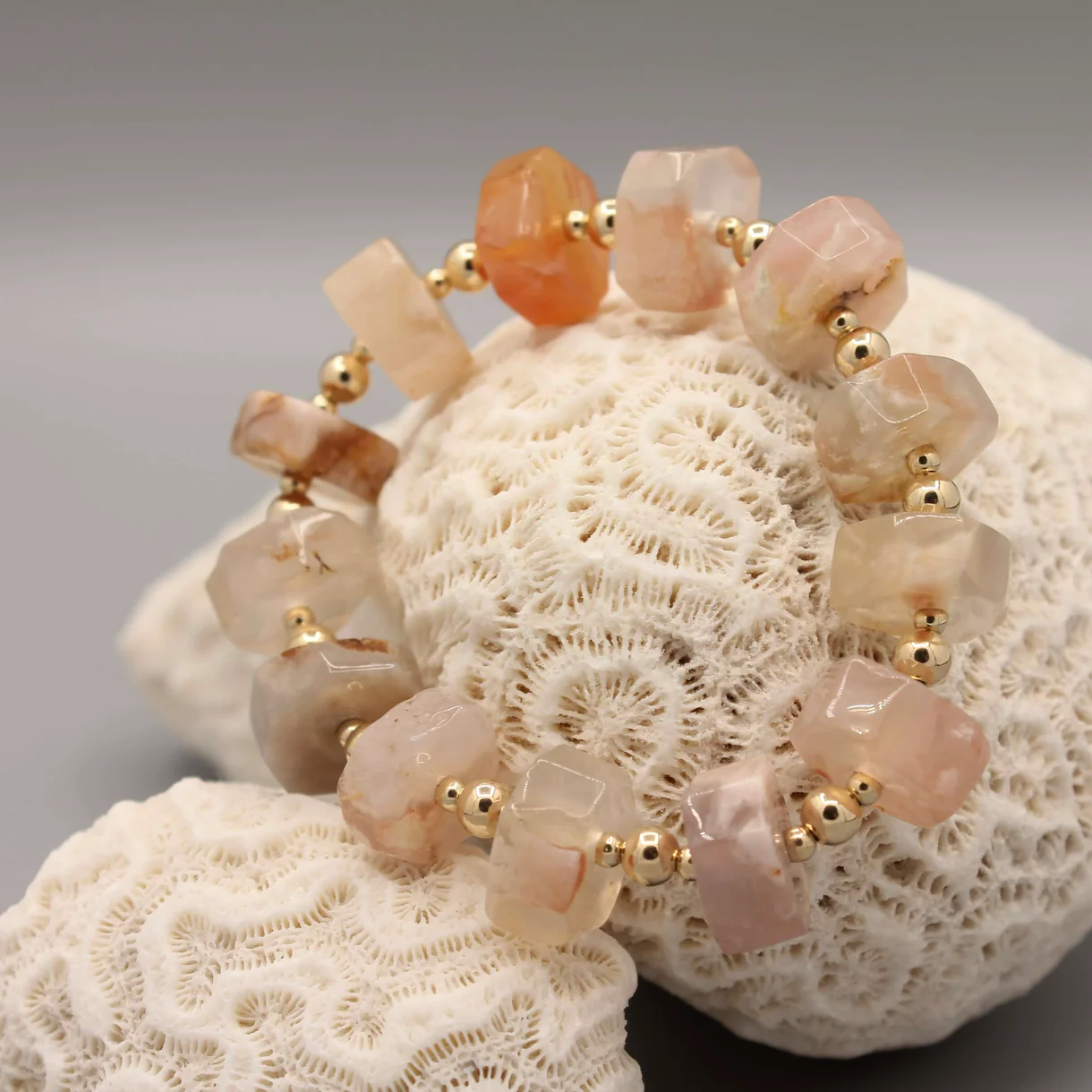 De YOU ROCK !!! Pink armband is meer dan een accessoire: het is een stijlstatement. Draag hem solo en laat de roze oceaan agaat de show stelen, of combineer hem met een basic Gold Filled armband voor een luxueus gelaagd effect. De royale kralen en de warme kleurencombinatie maken dit sieraad geschikt voor zowel dagelijkse looks als voor speciale gelegenheden. Of je nu kiest voor casual chic of een feestelijke outfit, deze armband voegt altijd een vleugje exclusiviteit toe.